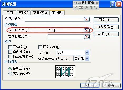 在Excel做好的工資表中,執(zhí)行“文件”→“頁面設(shè)置”命令,在打開的“頁面設(shè)置”對話框中切換到“工作表”標(biāo)簽,單擊“頂端標(biāo)題行”右側(cè)的按鈕,在工作表中選擇工資表的頭部區(qū)域,然后單擊回車鍵,使“頁面設(shè)置”對話框如圖1所示,然后單擊“確定”按鈕使設(shè)置生效。
